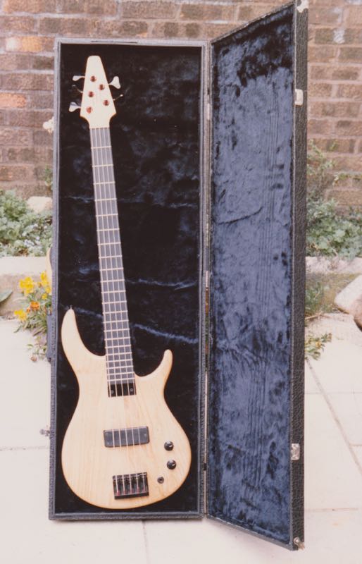5 string bass, made for Dad c1988 Chestnut, sycamore and ebony.
